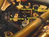 The bike, especially in unrejetted stock form, generates quite alot of heat. The designers could have decided to include a water temperature gauge but chose instead to give us a warning light. The thermostatically controlled fan also disconnects the rider from positive control over the cooling process. A manual fan switch restores that ability. In hot, slow riding in traffic the thermostat triggers the fan a bit late and then stays on for a long time. This page describes the installation of a water temperature gauge, a manual fan switch override, and an LED indicator to display when the fan is running. The running fan is a bit of a battery drain so the fan should not be left on too long.
