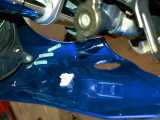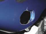 For a true flush mount, that lip must be ground down on the outside with a Dremel grinding wheel. On this left side I slipped a bit and scratched the fairing. No matter, the light is large enough to cover that up nicely. The second picture shows the inside of the fairing ground for a flush inside mount but this is not absolutely necessary. I did not do this and this photo was supplied by Curtis Clark who did do this step. The third photo shows the mount without a ground inside lip. The flexible design of the inside plastic pressure plate makes this possible.